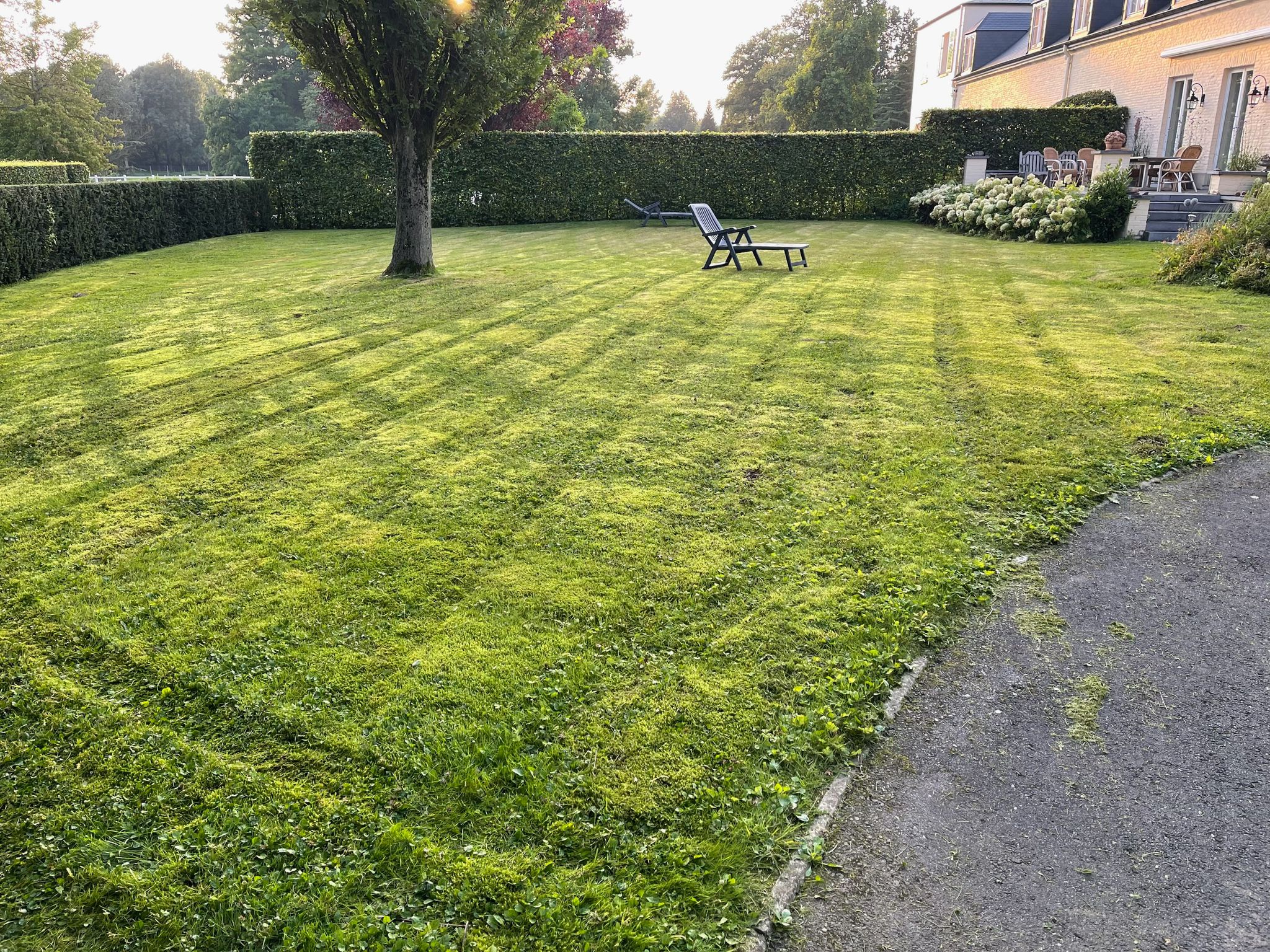 Une pelouse impeccable toute l'année. Tonte régulière, bordures nettes, ramassage inclus.